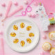 Elegant Golden Easter Eggs on ivory Paper Plates. Ideal for Easter, holidays, Birthday and more.