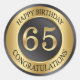 65th Birthday sticker with golden effect