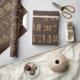 Golden Egyptian Hieroglyphs on Dark Papyrus Wrapping Paper