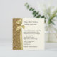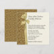 Elegant square custom wedding invitation done in cream, with graphics of a gold on gold ornate swirl design, on the left of the invitation and covering the back. Graphics of a satin looking golden tan ribbon and bow, runs down between the gold and cream backgrounds. Black text is fully customisable and ready to personalise for your special day. Matching products available.