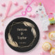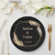 Golden Feathers on Black Rehearsal Dinner Paper Plate