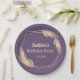 Golden Feathers on Plum Birthday Party Paper Plate