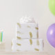 Elegant gift wrap pattern features golden floating feathers on white background