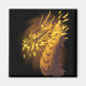 A dragon is bathed in the golden light of it's awesome fan of fire. By Paxdomino