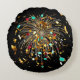 Golden Fireworks & Confetti Celebration Round Cushion