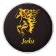 Striking golden flame horse design set against a dramatic black background, enhanced with a custom name for a touch of personalisation and allure.