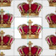 Shiny 3D gold and red fleurs-de-lis crown graphic, repeat pattern, background color customizable