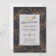 Invite your family and friends to celebrate your 50th wedding anniversary with these elegant invitations featuring gold floral elements on a dark background. 50th gold script and details in trendy modern lettering.