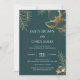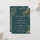 Modern wedding ceremony invitation cards for your special occasion! Featuring golden flowers with small leaves decorates the border of your wedding card and gold polygonal geometric design frames your wedding celebration details in a rich green background. Customise your wedding details, date, venue and more at the front. Designed to coordinate with our Gold Blooming | Modern wedding and event invitation collection.