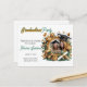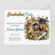 This graduation invitation features a large, full Floral Border photo with modern calligraphy overlay and graduation party details on the front and back.