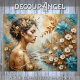 this design features the profile of a beautiful woman, with intricate gold and blue flowers and leaves, in a luxurious and refined composition. Choose the size that fits your vision, or contact us for a custom design made specifically for you. If you're a shop owner or reseller, message us on Zazzle or connect through our DecoupAngel Facebook page to explore exciting collaboration opportunities with unique benefits tailored to you