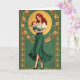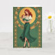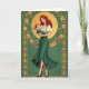 This design shows an elegant woman in a deep green skirt holding a small winged infant close, their matching auburn hair creating a tender, family-like echo 💚. Her calm, direct gaze and the baby’s relaxed posture suggest trust and closeness, like a quiet moment shared between loved ones. A rich emerald background surrounds them, bordered by a golden frame packed with rose details and curling floral shapes that feel lush and layered. Behind the woman’s head sits a warm ochre circle like a halo, drawing your eye to her face and softening the scene with gentle light. She wears a white puff-sleeve blouse that stands out sharply against the greens, while one foot angles forward as if she’s stepping into the viewer’s space. Subtle gold patterning appears along the sides, adding extra ornament without pulling focus from the figures. Near the top, “Happy St. Patrick’s Day” appears in gold lettering, with a small ☘️ tucked close to the words. The roses in the border glow in gold against the green field, and fine linework traces every petal and curve.