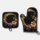 Beautiful Golden Floral Ornate Oven Mitt & Pot Holder Set