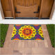 A kaleidoscope composed of golden and colorful flowers. Appearance Mayan symbol.