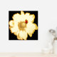 Elegant foil print featuring a large golden foil flower, with a red and black ladybug, against a black background. Beautiful print for any nature lover.