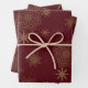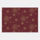 Golden flowers and stars on Burgundy Wrapping Paper Sheet