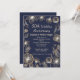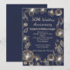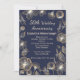Golden twinkling flowers on midnight blue background 50th Wedding Anniversary Party Invitation