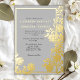 Capture the essence of elegance and sophistication with our Golden Foliage and Elegant Frame Foil Wedding Invitation. This stunning invitation features a sleek grey background adorned with a beautiful gold foil frame. The border is delicately decorated with large gold foil flowers and foliage, adding a touch of luxury to your special day. Perfect for couples looking to set the tone for a chic and stylish wedding, this invitation exudes class and charm. Whether you're planning a classic black-tie affair or a modern garden celebration, this invitation is sure to impress your guests and leave a lasting impression. Get ready to wow your loved ones with this exquisite wedding invitation that perfectly combines timeless beauty with contemporary design.