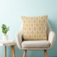 This warm and elegant throw pillow features a repeating vintage tile-inspired floral pattern in golden ochre on a soft cream background. The stylised floral motifs and symmetrical diamond layout give it a cosy, timeless feel—perfect for farmhouse decor, boho spaces, or vintage-inspired rooms.