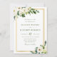 A darling combination of a classic gold frame and beautiful white watercolor summer flowers unique to the outdoor garden venue. The green text and back complements well the luxury metallic golden frame. The template is an easy DIY template where you can edit and customise the text, wording, paper type among other features.