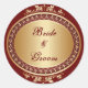 Golden Frame Bride & Groom Round Sticker
