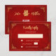 A gold double happiness symbol and a gold Chinese frame on a shimmering red background. RSVP Chinese Wedding Card. At the backside is a scannable qr code for your wedding website.