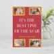 Celebrate the season with a festive holiday design featuring four cherished photos outlined in shimmering gold. A snowy red background sets the stage for bold white lettering that declares “It’s the Best Time of the Year”, accented with a smaller golden message of “Wishing You Joy and Cheer.” The back continues the warmth with “Merry Christmas! Warm wishes to you and your family throughout this holiday season” in elegant dancing script with a golden drop shadow. Finished with a classic family name line in Playfair Display, this design blends timeless holiday colors, heartfelt greetings, and treasured memories into one joyful keepsake.