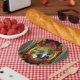 The perfect "frame" for your wedding day! Magnificent frame decorated with red roses in gothic style. Insert your picture. Extraordinary paper plates for your guests. Designed with AI by AIbyMarion.