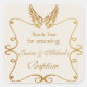 This stunning, cream sticker to show your happiness on a special day. The square design features a lovely vintage, scroll frame with golden wings. <a href='http://www.freepik.com/free-vector/angel-wings-tattoos_724305.htm'>Designed by Freepik</a><a href='http://www.freepik.com/free-vector/collection-of-ornaments-in-doodle-style_809156.htm'>Designed by Freepik</a>The card is easy to customise with your wording, font and font colour.<br/><br/>Not exactly what you're looking for? All our products can be custom designed to meet your needs at no extra charge.<br/><br/>Simply contact us at askcottonlamb@gmail.com<br/><br/>Coordinating products available: Golden Frame With Wings Response Card<br/><br/>Golden Fram With Wings Driving Direction Card or Menu <br/><br/>Golden Frame With Wings Invitation<br/><br/>Golden Frame With Wings Postage Stamp