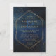 This etherial galaxy wedding invitation is perfect for a modern, whimsical wedding. The design features dark a navy blue watercolor galaxy with stars and a gold geometric frame.