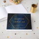 This etherial galaxy wedding invitation is perfect for a modern, whimsical wedding. The design features dark a navy blue watercolor galaxy with stars and a gold geometric frame.