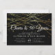 Our elegant anniversary party invitations in chic black, gold and white feature a rich black background with strings of faux gold foil lights across the top, and "Cheers to XX years" in chic calligraphy script typography. Customise for any milestone anniversary; example shown for a 50th anniversary. Personalise with your wedding anniversary celebration details beneath in white lettering.