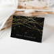 Chic thank you notes or notecards feature a rich black background crisscrossed with strands of faux gold foil string lights. Personalise with your custom text beneath in classic white lettering. Shown with the French expression of thanks, "merci beaucoup." Blank inside for your handwritten message; or, add a custom pre-printed message of your choice.