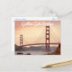 Welcome to San Francisco! This fun travel post card features a photo of a glorious sunrise over the infamous Golden Gate Bridge located in San Francisco, California.