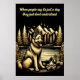A golden German shepherd sits by a campfire in a serene forest setting. The moon shines brightly in the night sky, and the wolf gazes out at the calm lake. The scene is rendered in a detailed, line-art style, evoking a sense of peace and tranquillity.