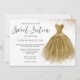 Golden Glitter Gold Gown Dress Sweet 16 Party Invitation