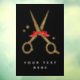 Change the text easily! Golden glitter scissors classic black colour combination. Elegant hair stylist sign with a red ribbon (photo element).