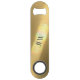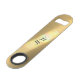 This beautiful brillant golden bar key bottle opener is customisable, with Initials or Name highlighted in a rainbow of colours that appears to glow due to the photographic image of captured light refraction.