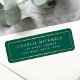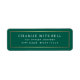 Dark forest green or custom colour return address labels with a thin golden gradient (printed image) border. Fonts and background colour can be customised with the design tool.