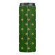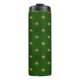 This Irish inspired pattern features metallic gold four leaf clovers on a dark green background.
