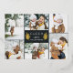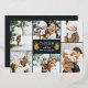 Elegant botanical holiday photo card features six of your favourite photos in a geometric collage layout. "Cheer" or your short custom holiday greeting appears in the centre, flanked by gold foil branches on a dark charcoal background. Personalise with your names, and add an additional photo to the back, along with the year.