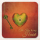 Lovely and romantic illustration featuring a golden heart and key on a structured red background. Gold Script love quote: "The key to my heart".