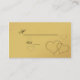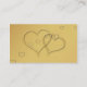 Elegant place card with 2 golden hearts on a golden background with gold and blue hearts.