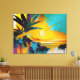 This artwork blends abstract expressionism with tropical and coastal aesthetics, making it a versatile design that feels both energetic and soothing. The rich color palette adds warmth to neutral spaces and vibrancy to modern interiors, while the abstract composition invites personal interpretation—whether it evokes memories of travel, summer evenings, or a longing for distant shores.
