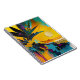 This artwork blends abstract expressionism with tropical and coastal aesthetics, making it a versatile design that feels both energetic and soothing. The rich color palette adds warmth to neutral spaces and vibrancy to modern interiors, while the abstract composition invites personal interpretation—whether it evokes memories of travel, summer evenings, or a longing for distant shores.