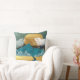 A striking abstract landscape throw pillow featuring a golden sun rising behind bold blue mountains, contrasted with shimmering textures and flowing golden fields. White birds soar across the cloudy sky, adding movement and serenity to the scene. The composition blends natural and surreal elements, creating a modern, luxurious aesthetic that feels both calming and powerful. Perfect for lovers of bold colour contrasts and contemporary nature-inspired art.