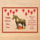 This acrylic greeting card shows a golden horse standing on a flaming cloud symbolising the ushering in of the Year of the Horse.