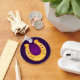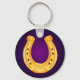Lucky golden horseshoe, original design artwork on gradient purple background. Happy blessings from Happy Wishing Well dot com.