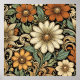The Golden Hour wall art features a rich floral design with warm cream, rust, and goldenrod blossoms set against a deep, moody background. Art Deco-inspired foliage adds a touch of vintage sophistication, while delicate metallic outlines bring a subtle, elegant shimmer. Perfect for adding warmth and timeless charm to any space.