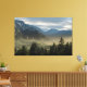 Golden Hour Misty Peaks Evergreen Forest Art Canvas Print